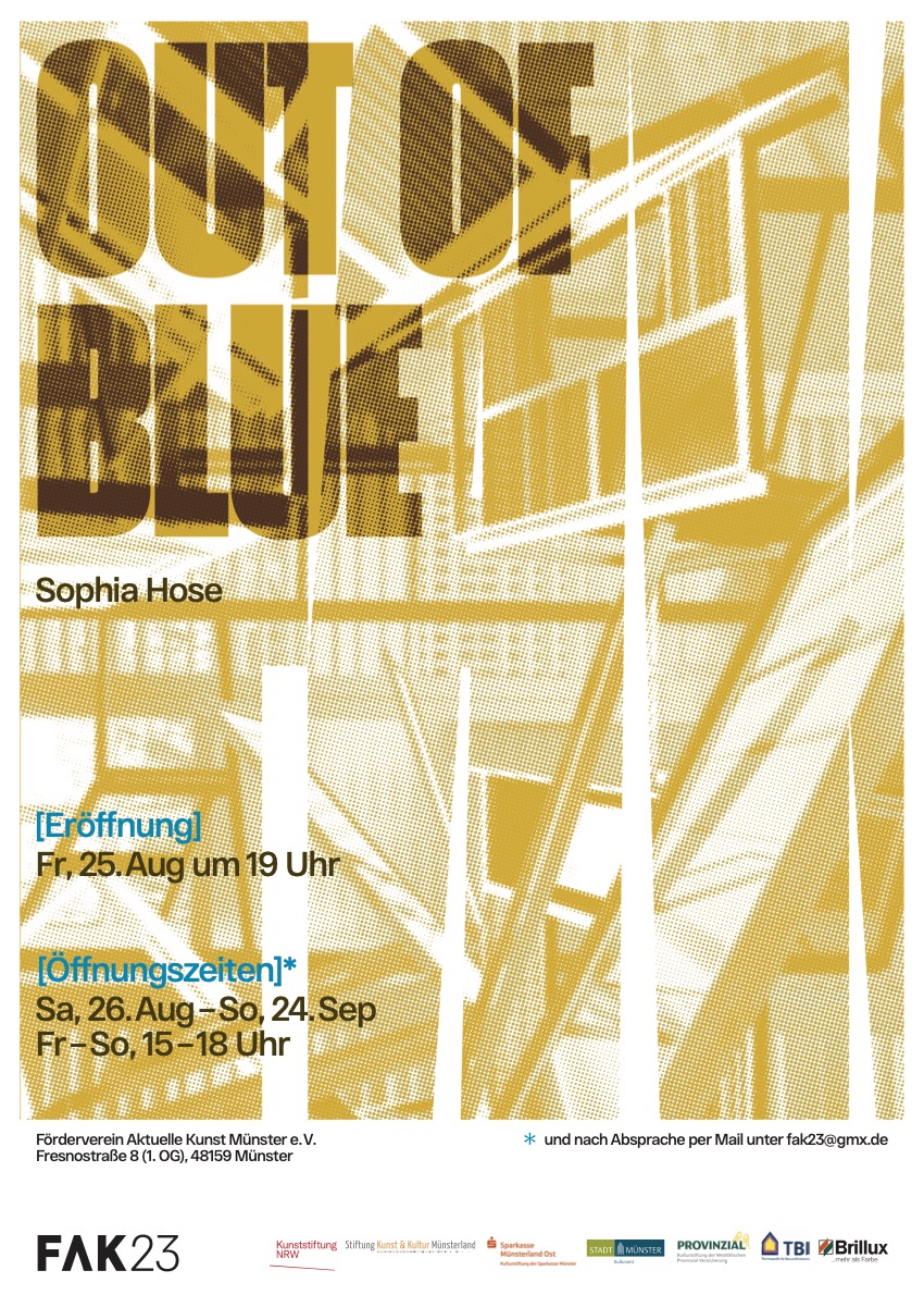 Das Areal der ehemaligen Lincoln-Kaserne an der Fresnostraße hat eine Geschichte der Wandlung erfahren. Heute ist es ein Wohnquartier, für das ein Großteil des Baubestandes erhalten geblieben ist. Für FAK23 schafft Sophia Hose eine ortspezifische Installation. Die raumgreifende Arbeit aus Holz greift bestehende Strukturen auf und tritt in ein Wechselspiel mit der Architektur ein. Hose bedient sich hierfür an bestehenden baulichen Elementen, die sie gezielt mit weiteren Strukturen und Oberflächen ergänzt. Solide Elemente vereinen sich mit Durchlässigkeiten, Transparenzen und Spiegelungen zu einem Dazwischen.