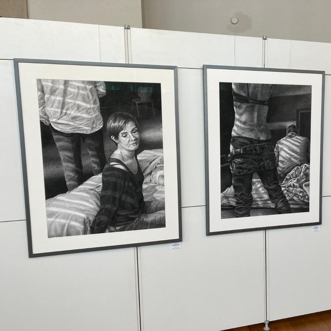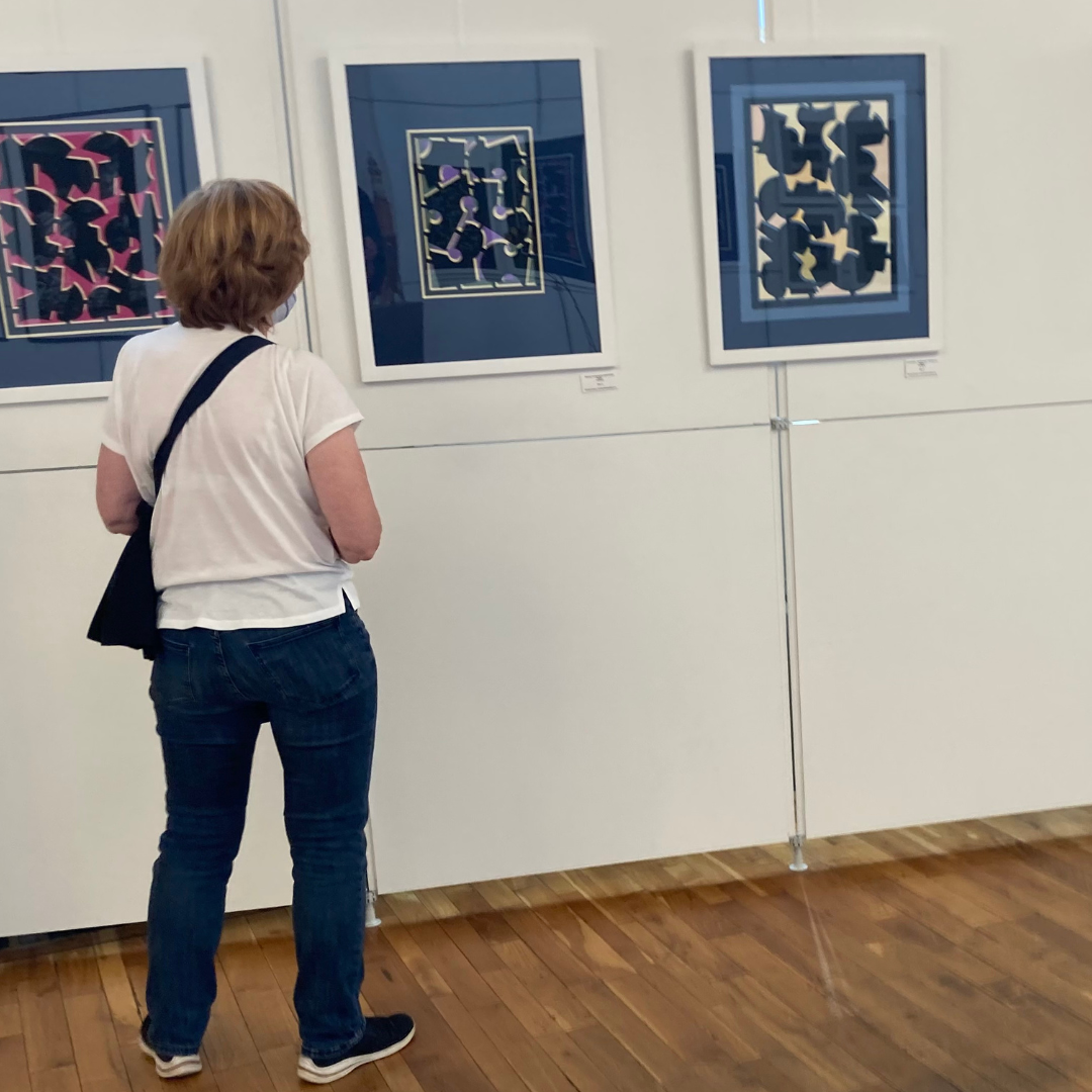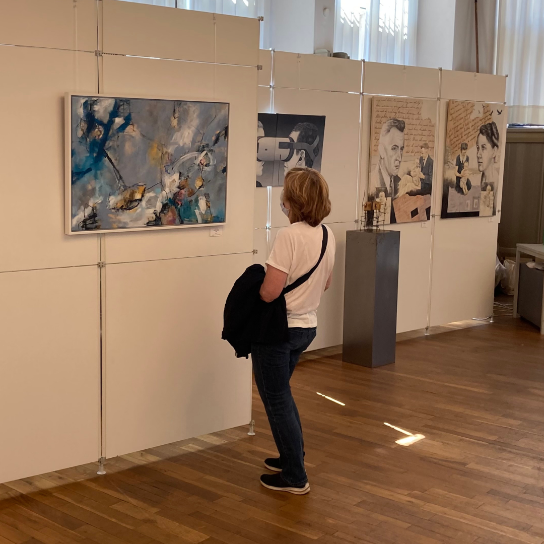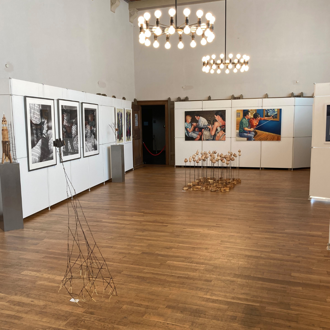 Aber zur Ausstellung: Drinnen gibt es noch bis zum 7. August Arbeiten von Peter Schipper (Malerei, Zeichungen), Chris Rodenburg (Bildhauerei), Petra Gillhaus (Abstrakte Malerei), Michael Kestner (Papierschnitt/ -arbeiten) und Elke Demter (Fotografie) zu sehen.