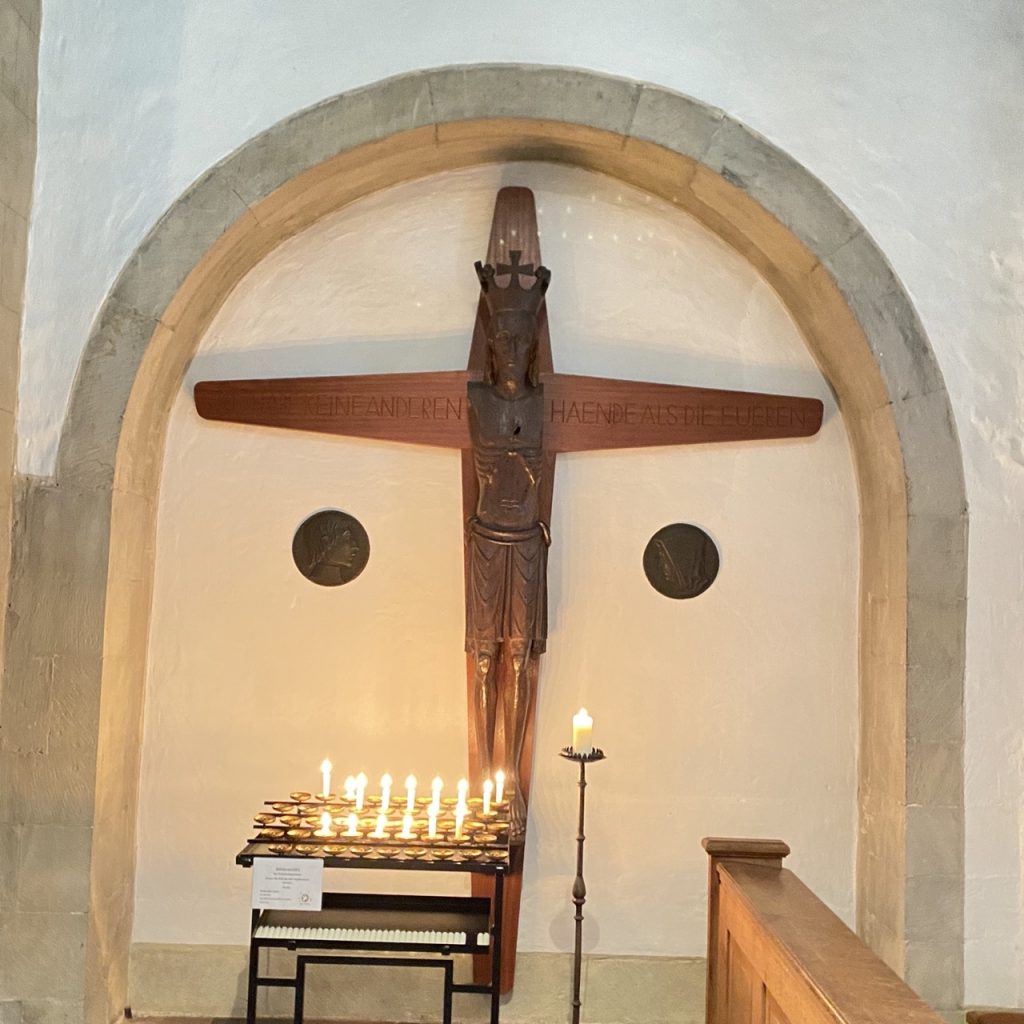 Ideengeberin war aber auch die Christusfigur in der Kirche St. Ludgeri. Sie hat im Bombenhagel ihre Arme verloren.