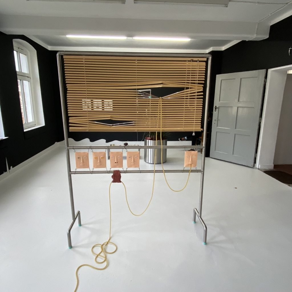 Ihre Arbeiten strotzen vor Energie, Humor und Komplexität und erobern die auserwähl- ten Räume wie im Sturm. Mit Materialien wie beispielsweise Holz, Metall, Kleister, Mull, Metallstangen und plakatierten Flächen oder Plastikobst, vereinen sie mit einer unfassbaren Detailverliebtheit Bestehendes und Gesammeltes zu neuen Dimensionen, wo Zeit gefühlt außer Kraft gesetzt wird.
