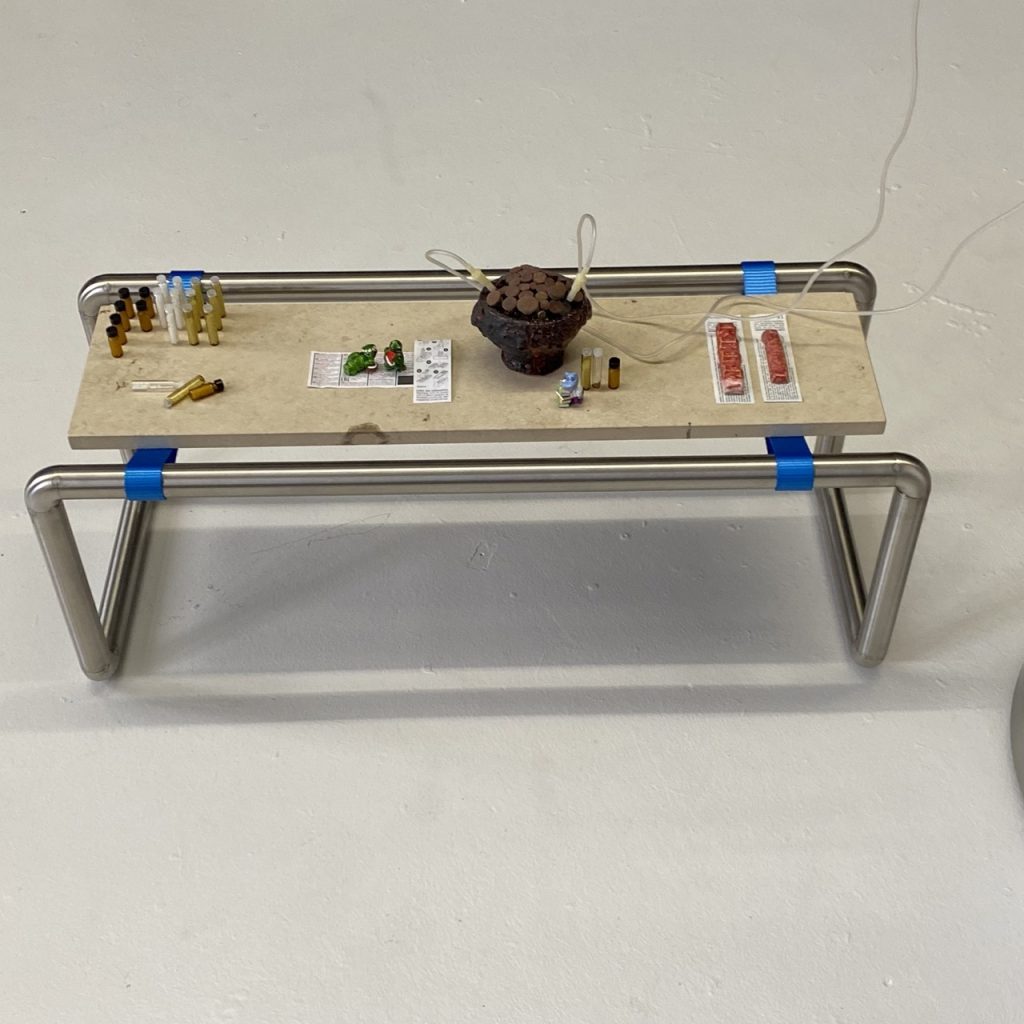 Ihre Artefakte heißen Eiermann & Pille, Vasektomie im Wartezimmer oder Sprechstunde. Es geht also um die Abteilung Gesundheit in der Rauminstallation der beiden Künstlerinnen aus Düsseldorf.