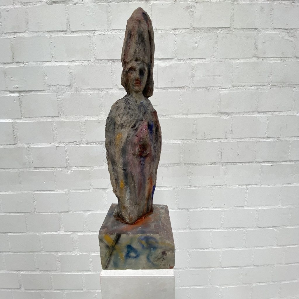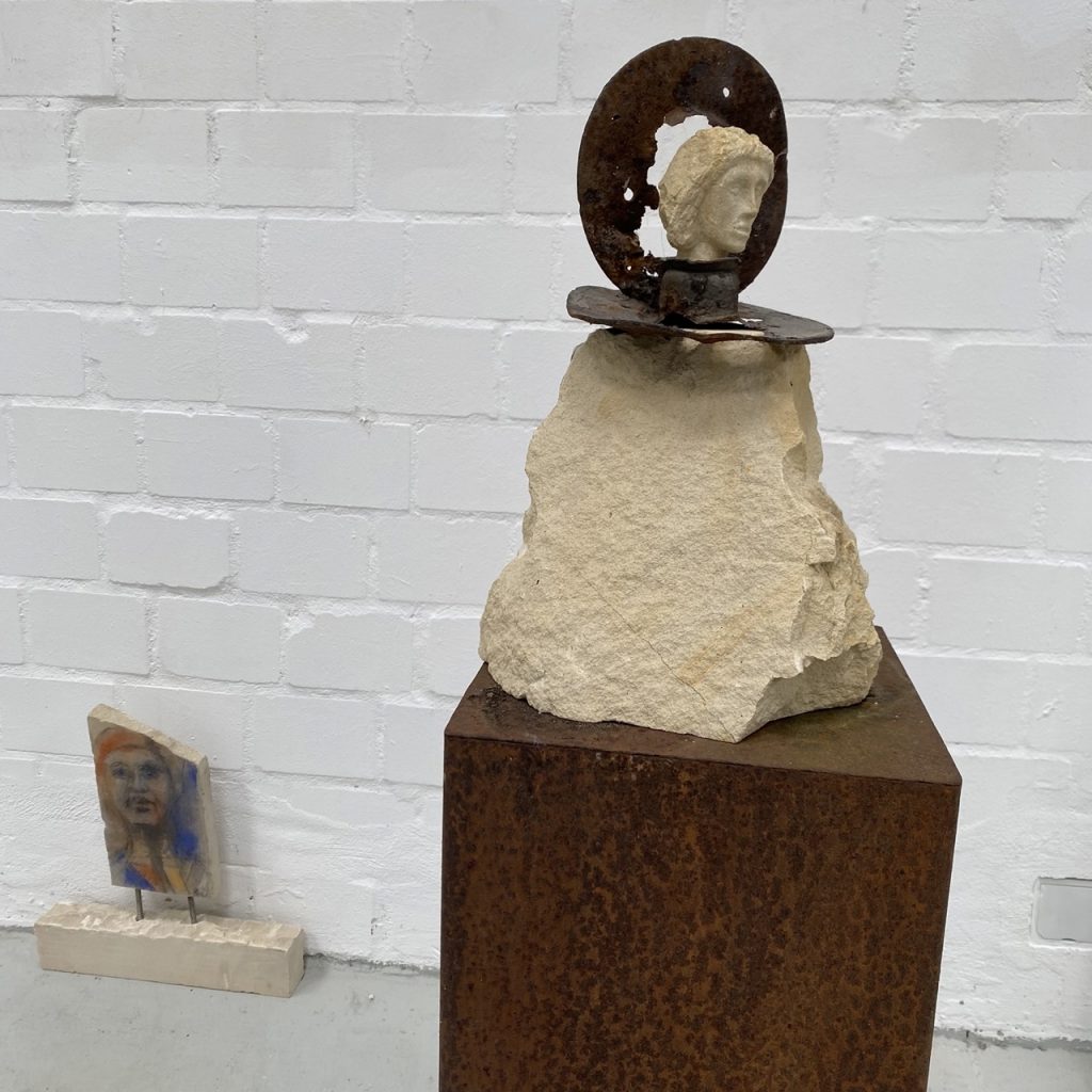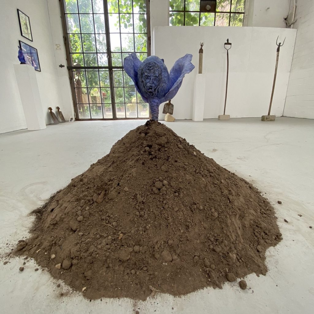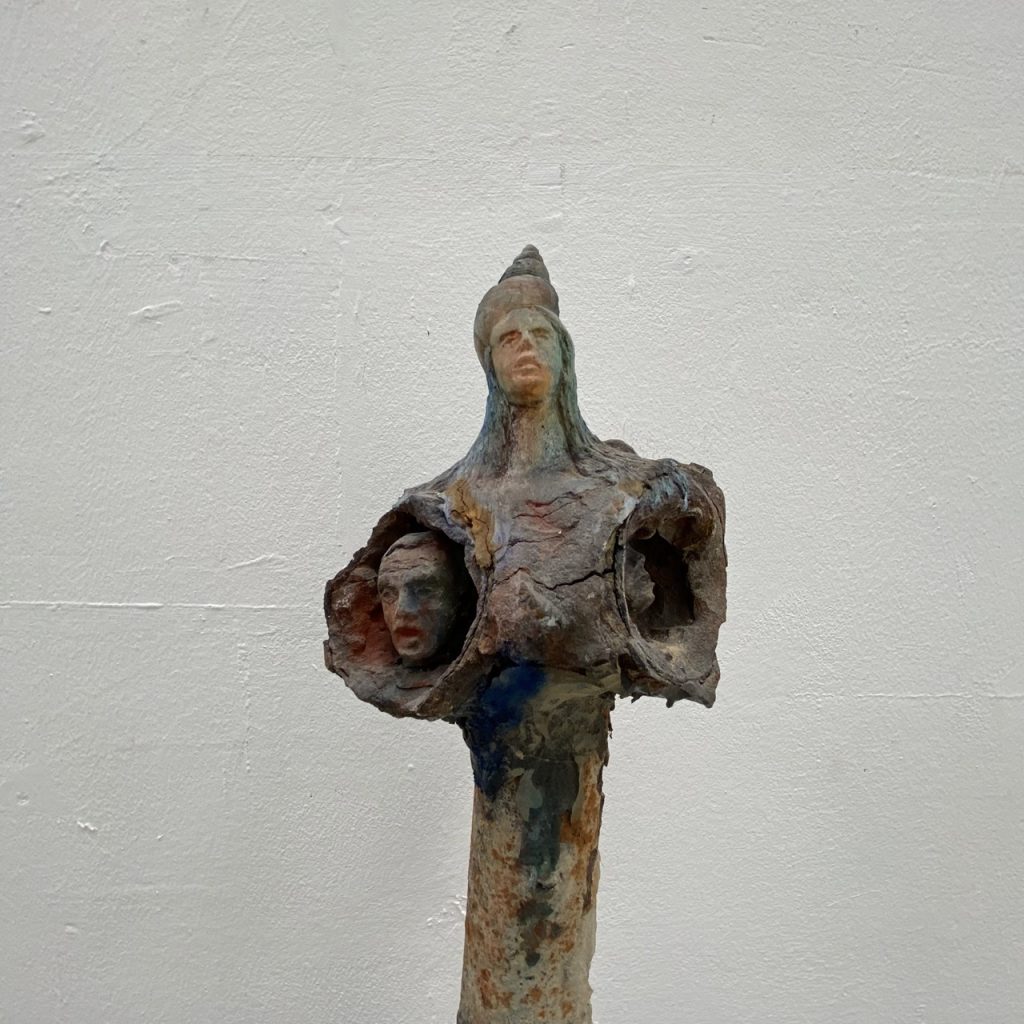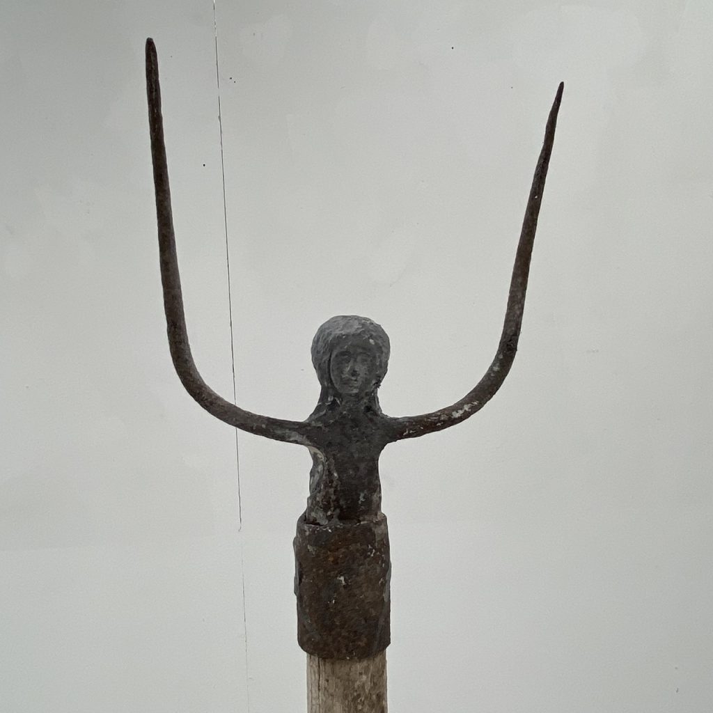 Hetzel nutzt Naturmaterialien, verarbeitet Fundstücke für seine oft figürlichen Objekte. Alte Wurzeln, Treibholz, Muscheln, einen verrosteten Spaten, Motorteile vom alten VW-Bus. Das klingt alles nach Hippie-Basteln und Achtsamkeits-123 ist aber alles andere als Kleinkunst-Patschi.