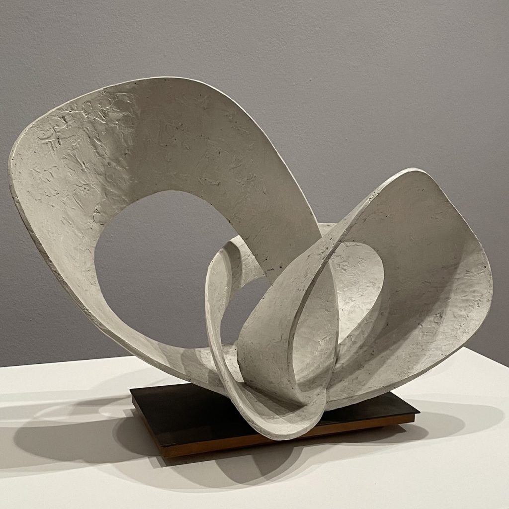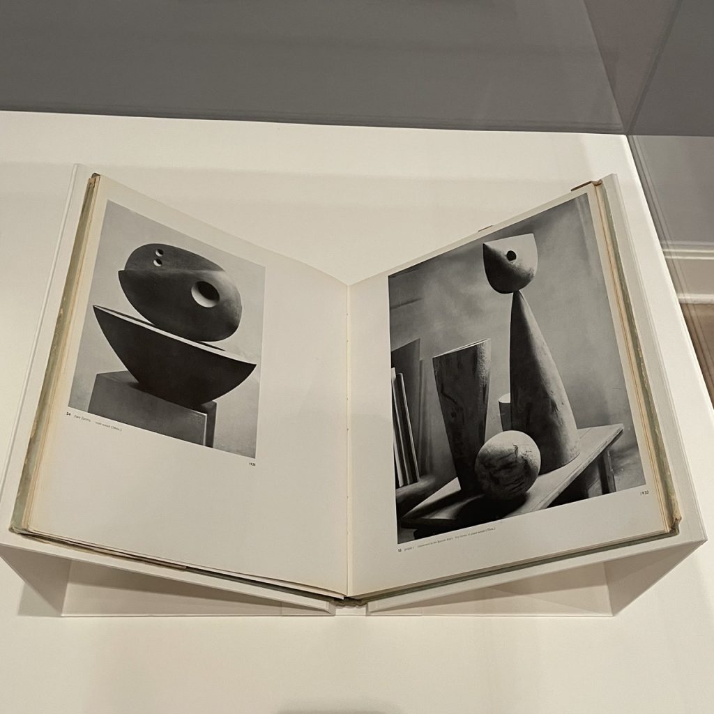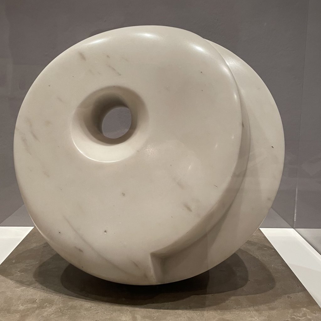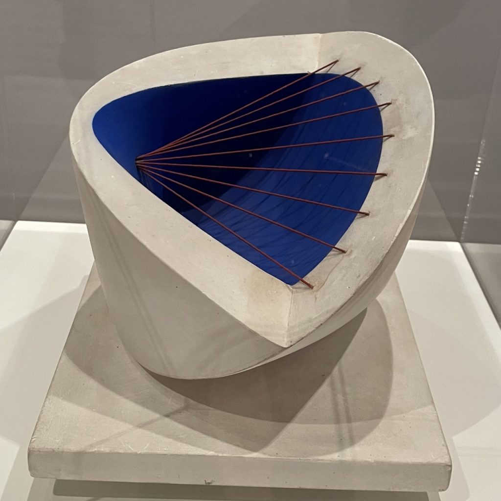 Jedenfalls sah seine Kunst genauso aus wie das, was die Hepworth da machte. Dinge mit Loch. Dinge mit Loch und Faden.