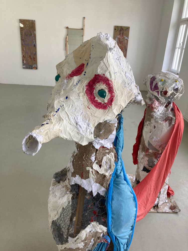 Samstag, 18. Juni 2022. Als ich den kühlen Ausstellungsraum des FAK betrat, sah ich sofort ihren langen Rüssel, den gierigen Sauger, dazu die Hautfetzen. Sie schälte sich. Oder war es eine Art häuten? An manchen Stellen blickte man durch ihren Körper. Sie hatte so traurige Augen.