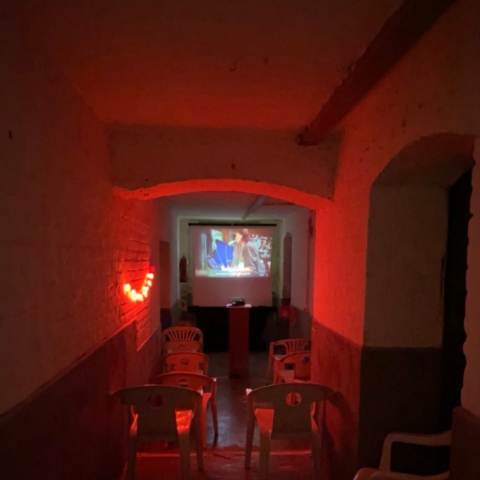 Im Keller ist weniger los als oben, also niemand. Im Keller läuft „Keine Angst für alle“ von Sarah Kramer. Monobloc Plastikstühle dienen als Kinosessel. Eine Lichterketten versprüht Wärme. Es ist ein wenig dunkel. Ich stolper über eine Stolperstelle, kriege Angst und versuche zurück ans Tageslicht zu kommen, unterdrücke meine Panik. Ich… also den Film habe ich leider nicht gesehen.