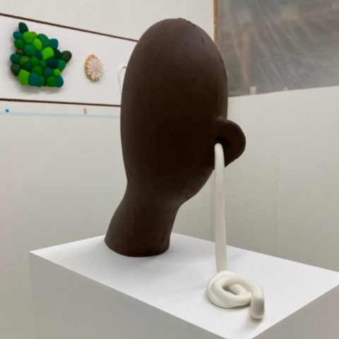 Oben schauen mich verschlafenen Künstler:innen teilweise neugierig an. „Möchtest du einen Kaffee?“ Nein. „Eine Waffel?“ Wieso eigentlich nicht. Gestern Abend zur Eröffnung blieb man auf ein Bier, jetzt auf eine Waffel. „Ich bin mittlerweile auch mehr Waffel“, sage ich und ernte seltsame Blicke.