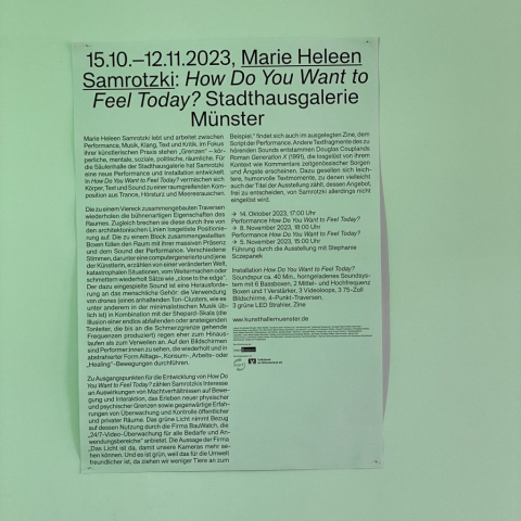 15.10-12.11. Marie Heleen Samrotzki.How Do You Want to Feel Today? Stadthausgalerie.