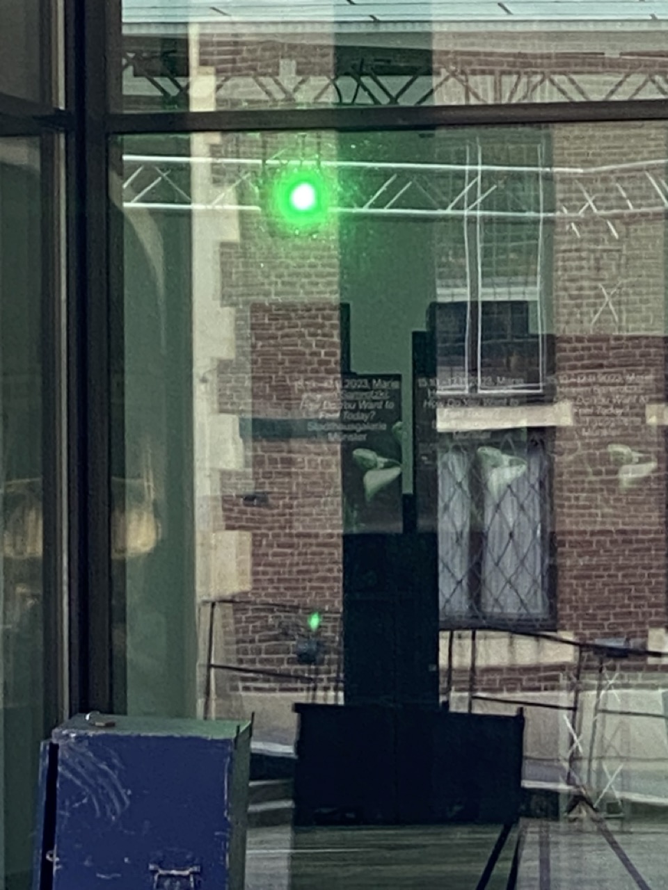 Donnerstag, 19. Oktober 15 Uhr. Stadthausgalerie Münster. Ein grünes Licht blendet mich.